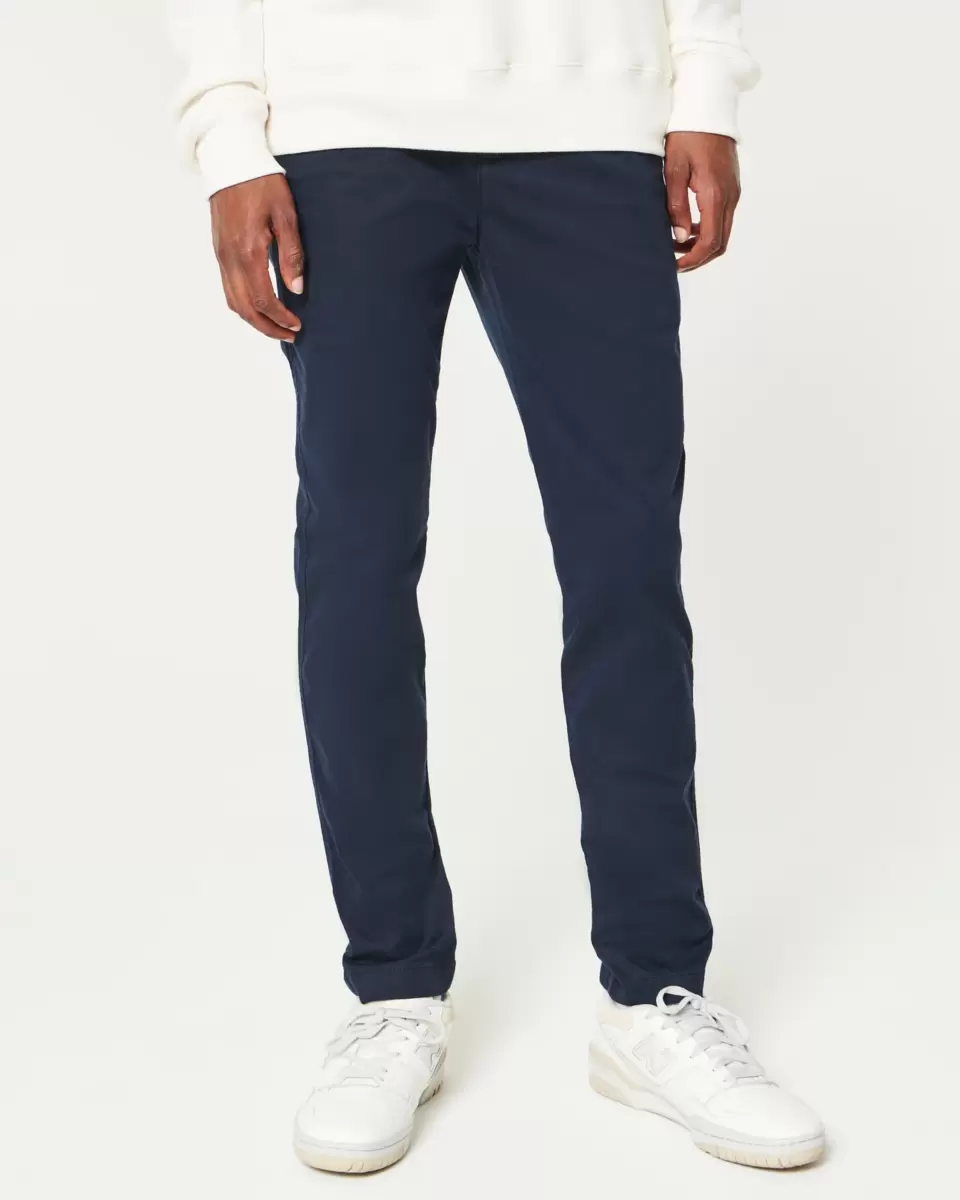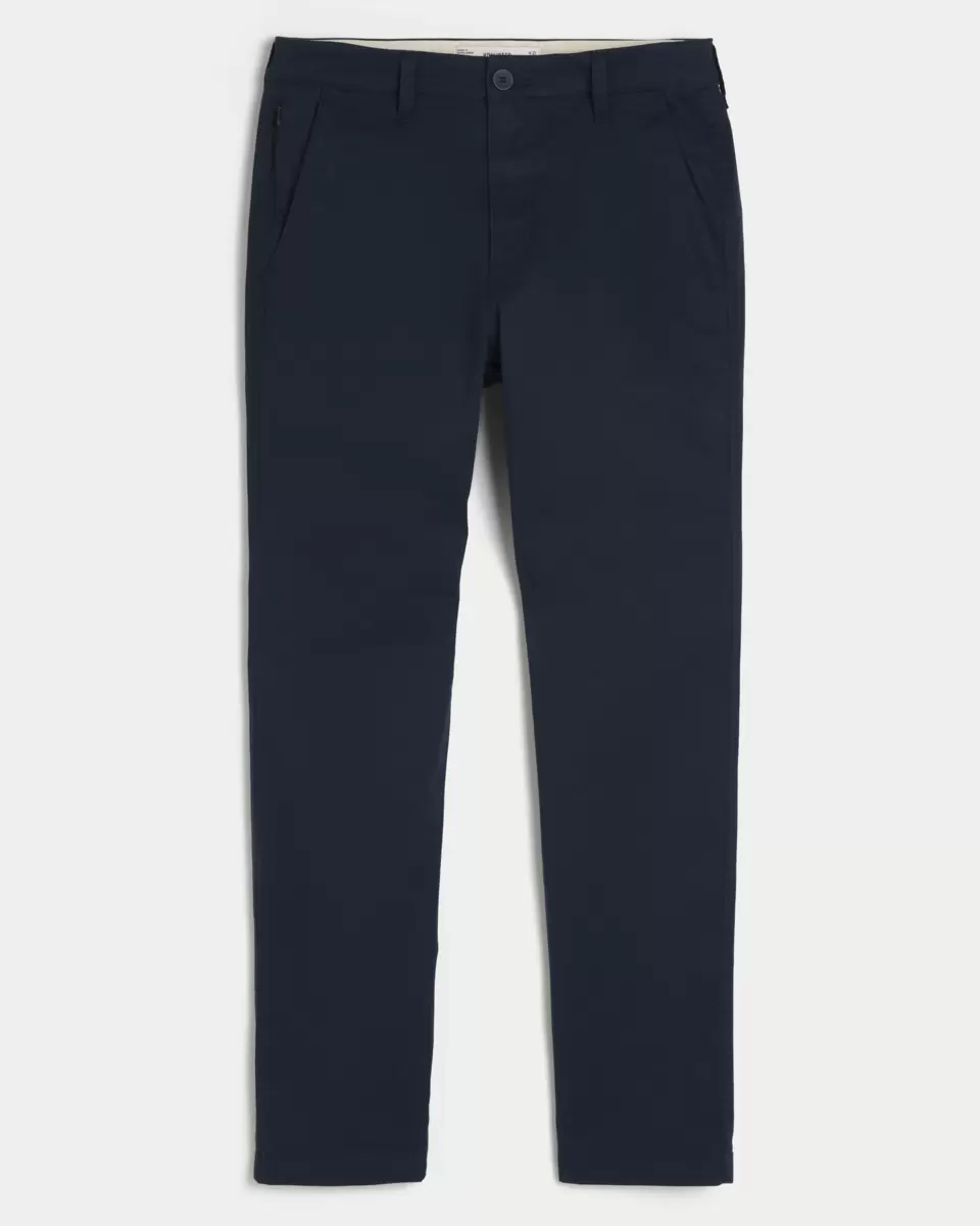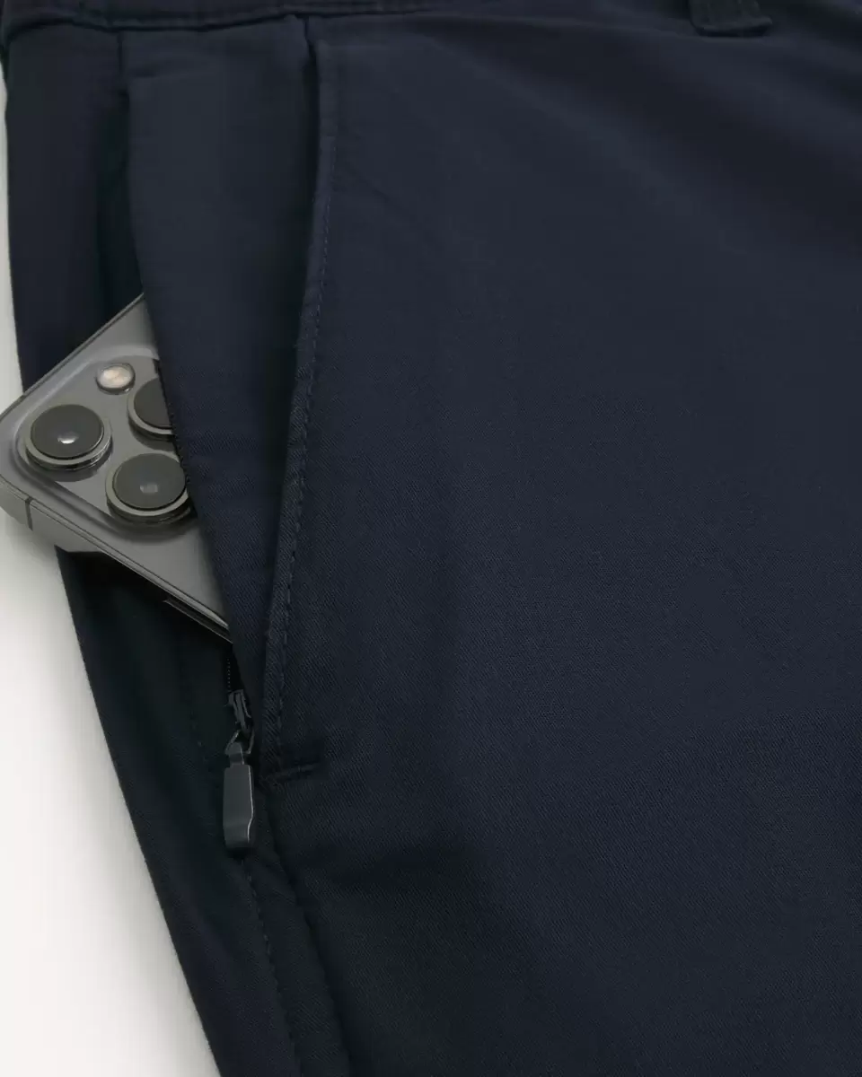 Pantalon chino en sergé extensible ultra-confortable, coupe slim de haut en bas. Poches, poche droite zippée. Importé.