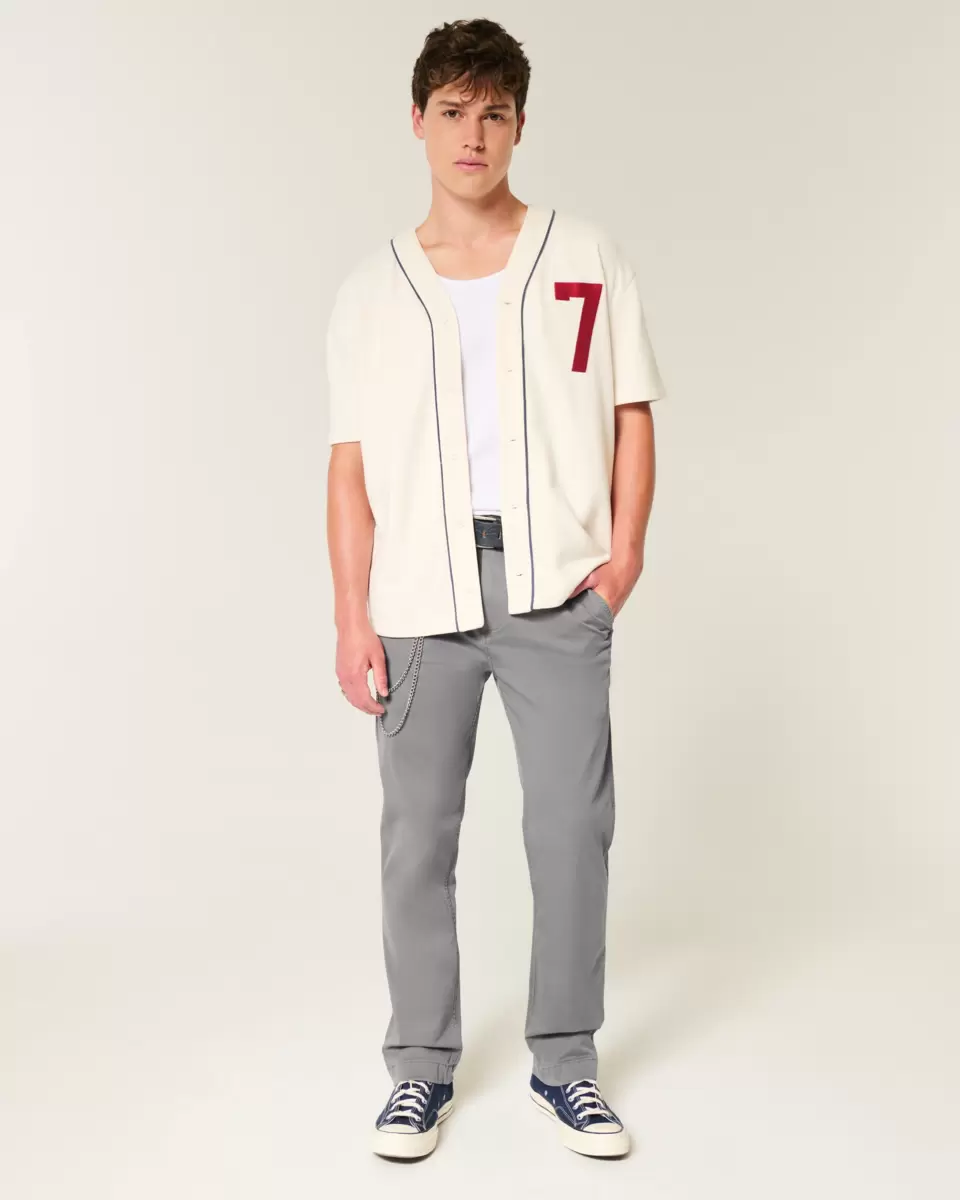 Pantalon chino confortable en sergé, coupe slim droite. Poches. Importé.