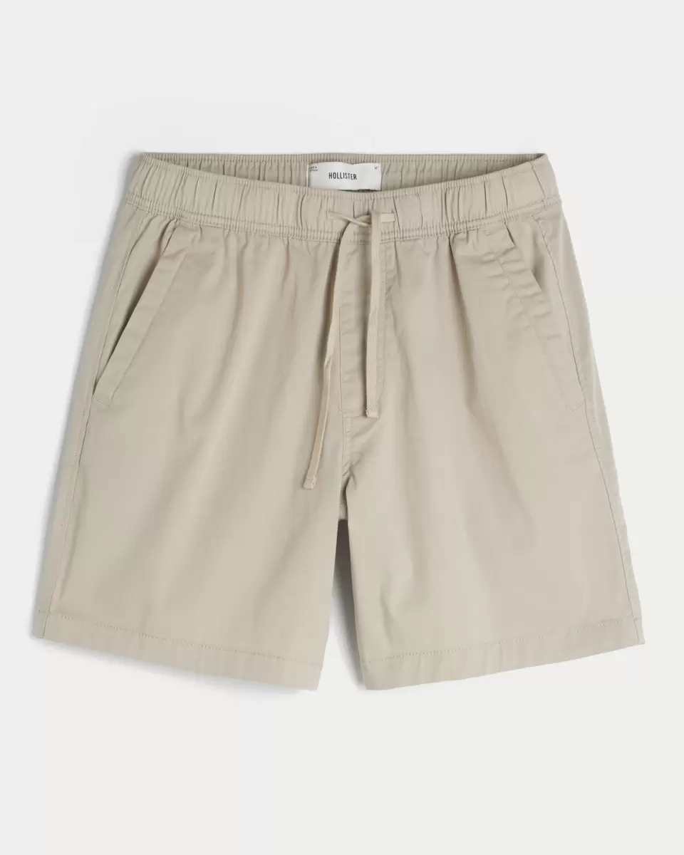 Short confortable en sergé qui arrive au-dessus du genou. Cordon de serrage à la taille, poches. Importé.