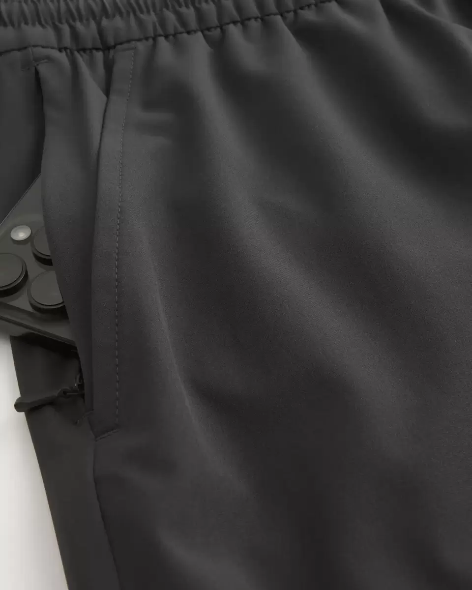 Short de sport confortable et extensible, longueur mi-cuisse et cordon de serrage à la taille. Motifs, poche droite zippée et poches.
