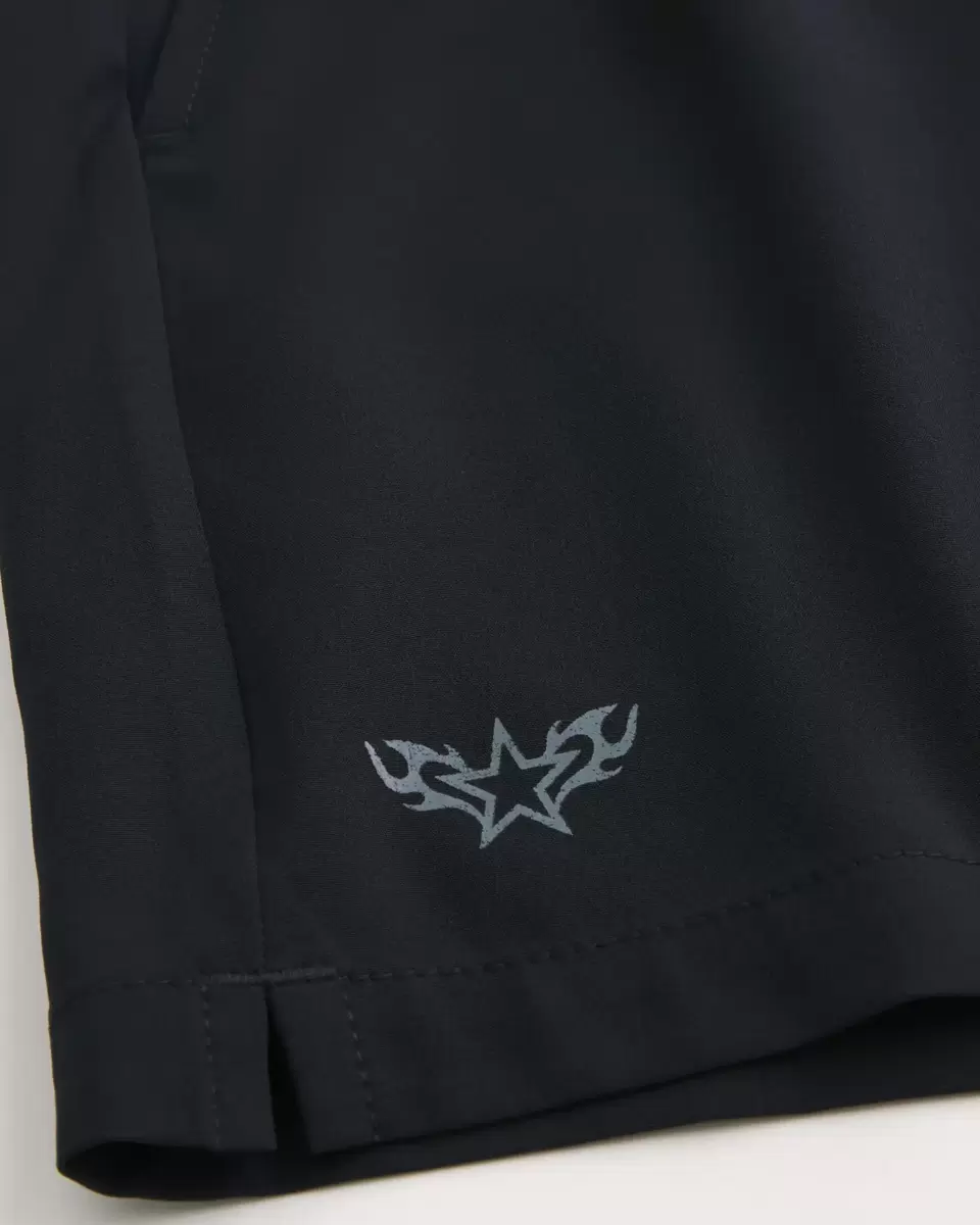 Short de sport confortable et extensible, longueur mi-cuisse et taille à cordon de serrage. Logo, poches. Importé.
