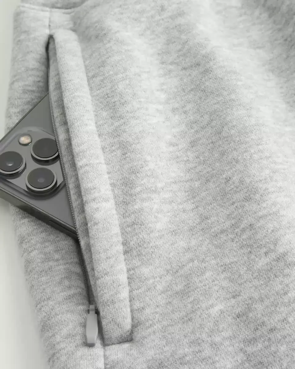 Short en polaire ultra doux arrivant à mi-cuisse, avec une jambe ample et confortable. Cordon de serrage à la taille, poches, poche droite zippée, logo brodé. Importé.