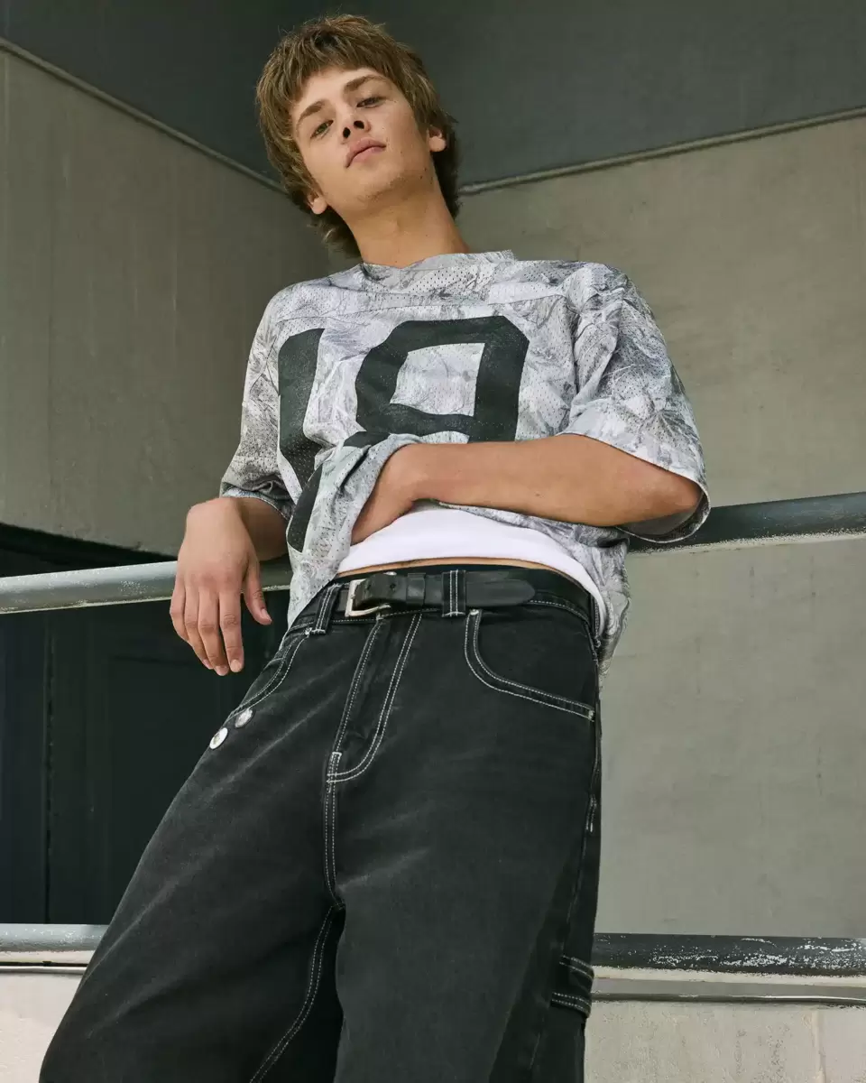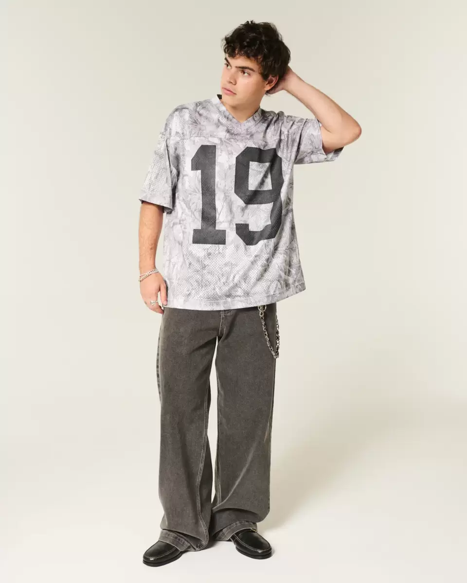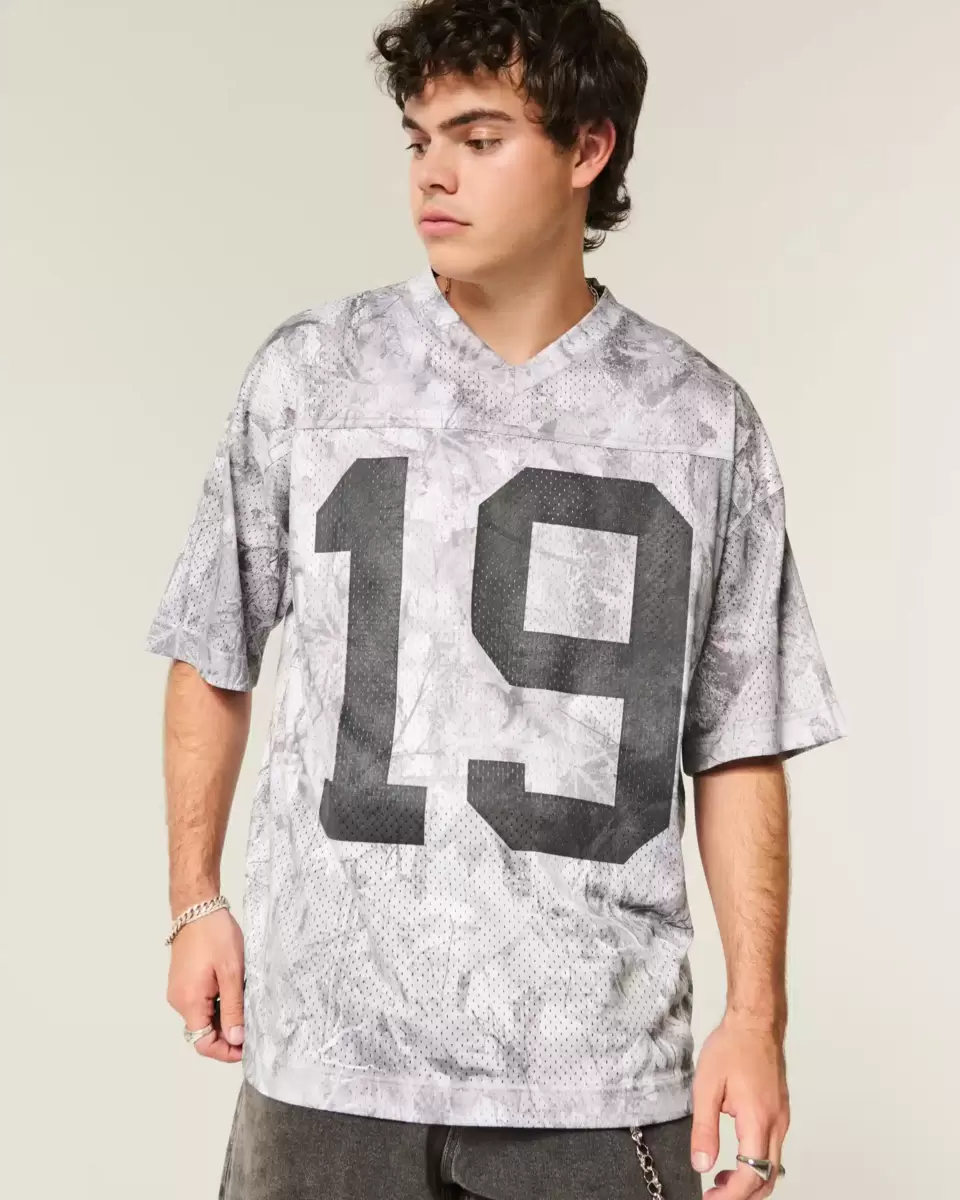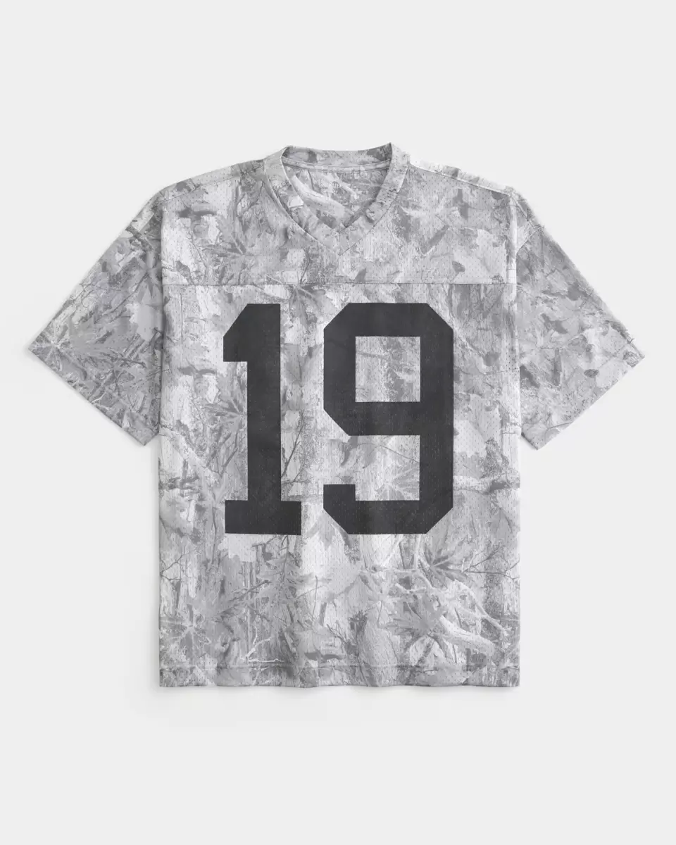 Ce maillot de football classique arbore un motif camouflage intégral et un imprimé numéroté. Encolure en V, manches courtes, tissu en maille douce. Coupe ample. Importé.