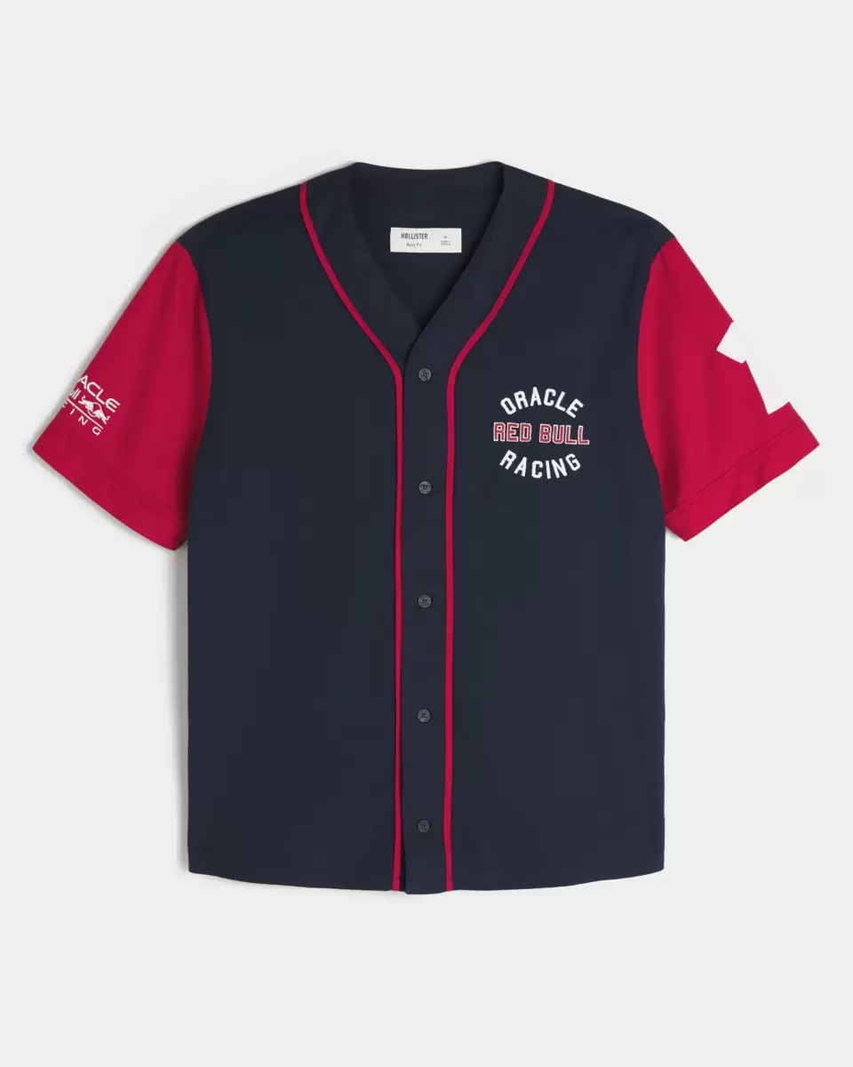 Ce maillot de baseball classique arbore une broderie graphique officielle Oracle Red Bull Racing sous licence sur la poitrine gauche et la manche droite. Fermeture boutonnée, encolure en V, manches courtes. Coupe carrée. Importé.