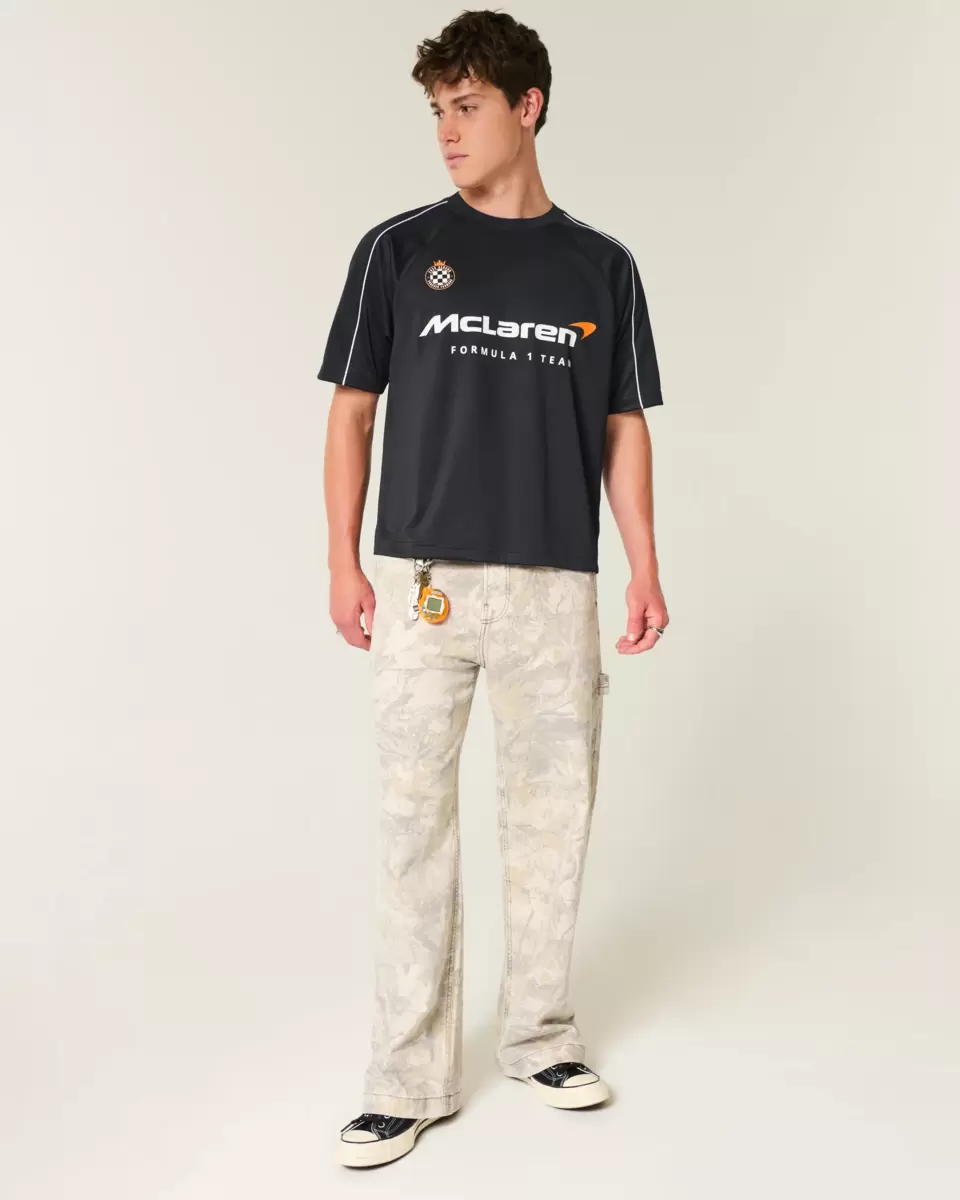 Ce maillot de football classique et ultra doux arbore des imprimés officiels de l’équipe de Formule 1 McLaren sous licence sur le devant et de Lando Norris dans le dos. Manches courtes, col en V. Coupe ample. Importé.