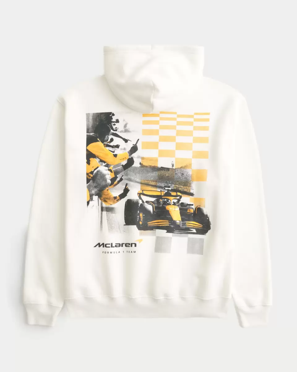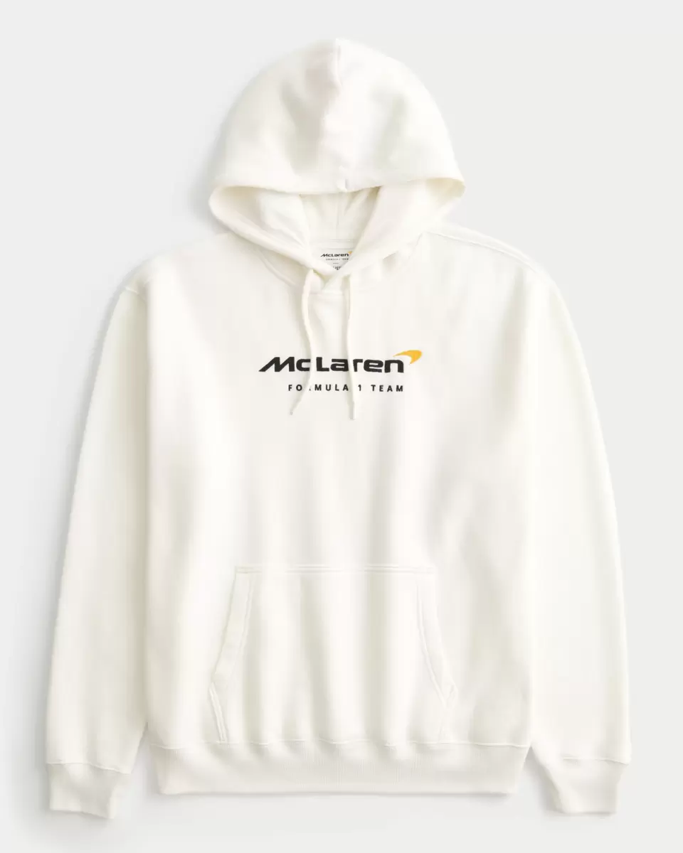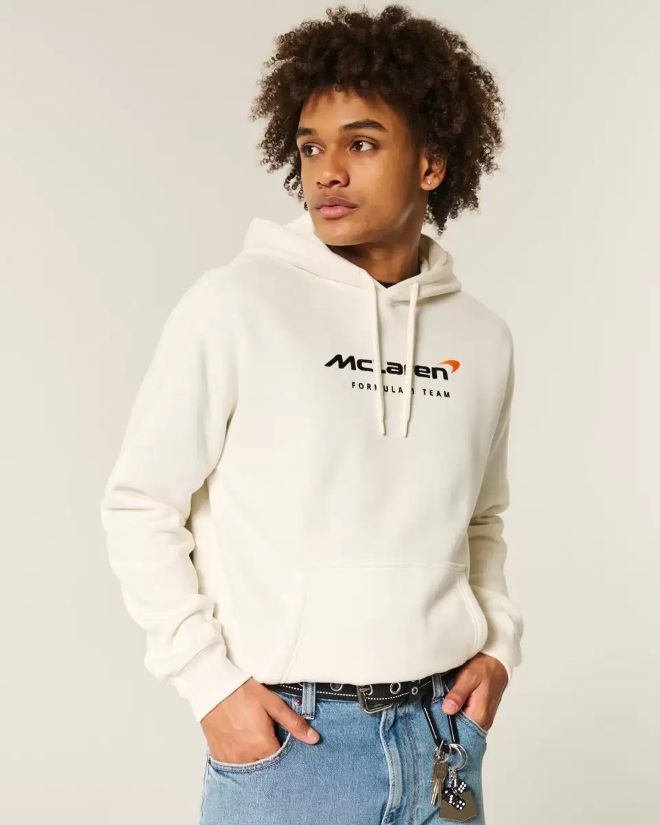Ce sweat à capuche en polaire ultra doux arbore une broderie graphique officielle de l’écurie de Formule 1 McLaren sur le devant et des imprimés au dos. Poche kangourou sur le devant, manches longues et capuche à cordon de serrage. Coupe décontractée. Importé.