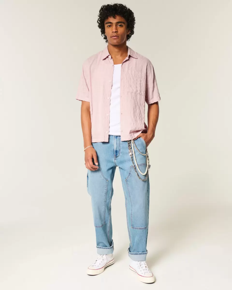 Cette chemise classique à manches courtes est dotée d’une fermeture boutonnée et d’une poche poitrine gauche. Manches courtes, col. Coupe carrée. Importé.