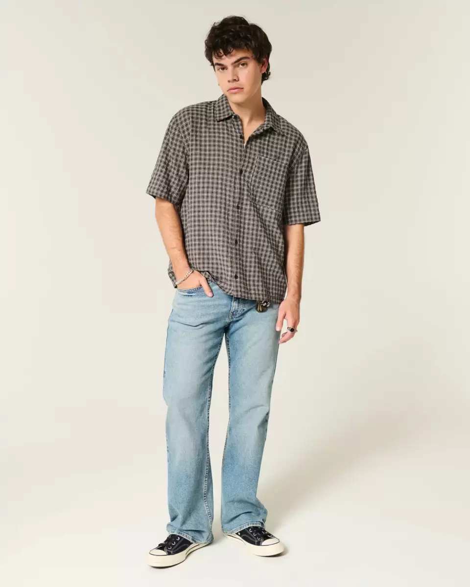 Cette chemise classique à manches courtes est dotée d’une fermeture boutonnée et d’une poche poitrine gauche. Manches courtes, col. Coupe carrée. Importé.