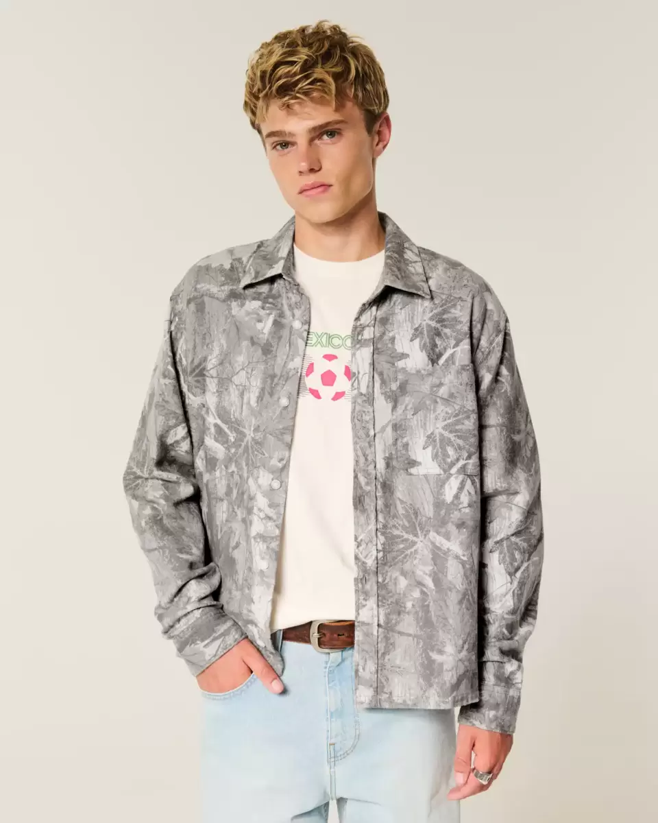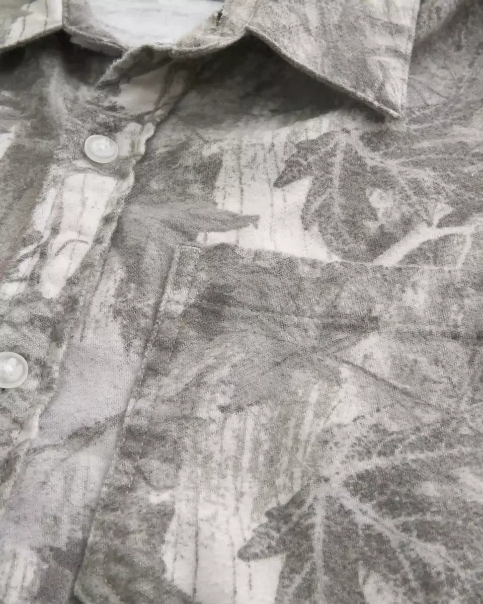 Chemise classique en flanelle de coton douce, ornée d’un motif camouflage intégral. Fermeture boutonnée, manches longues, poche poitrine gauche et col. Coupe carrée. Importé.