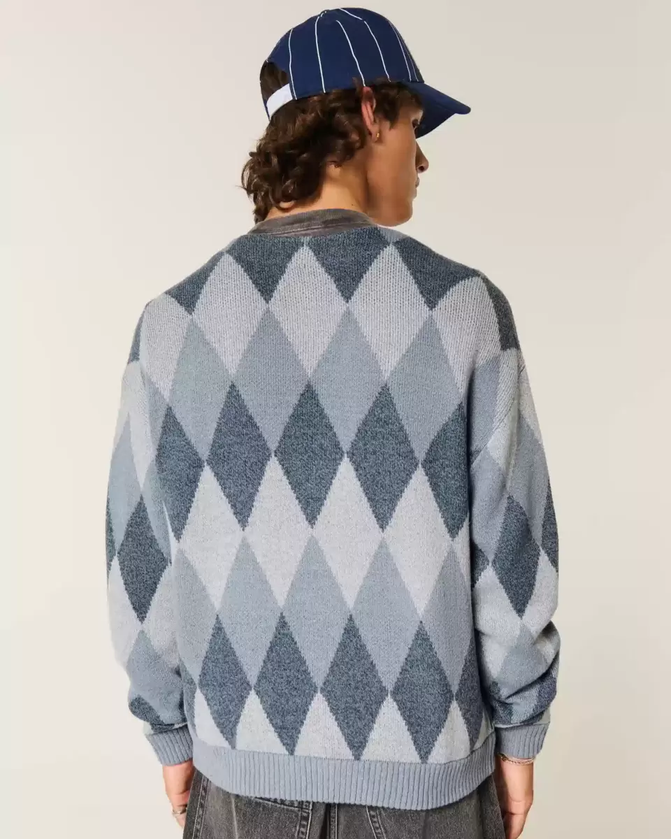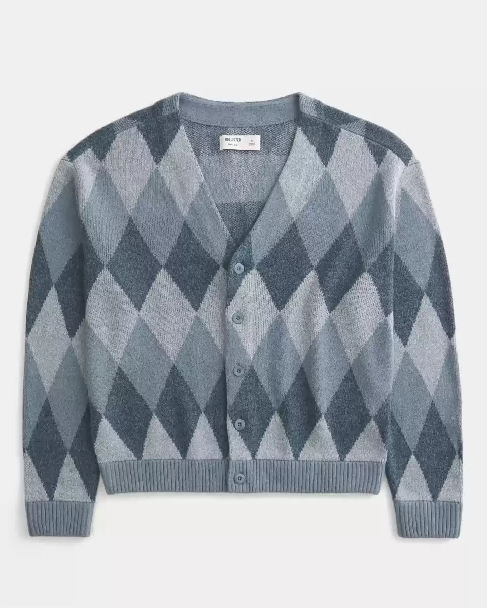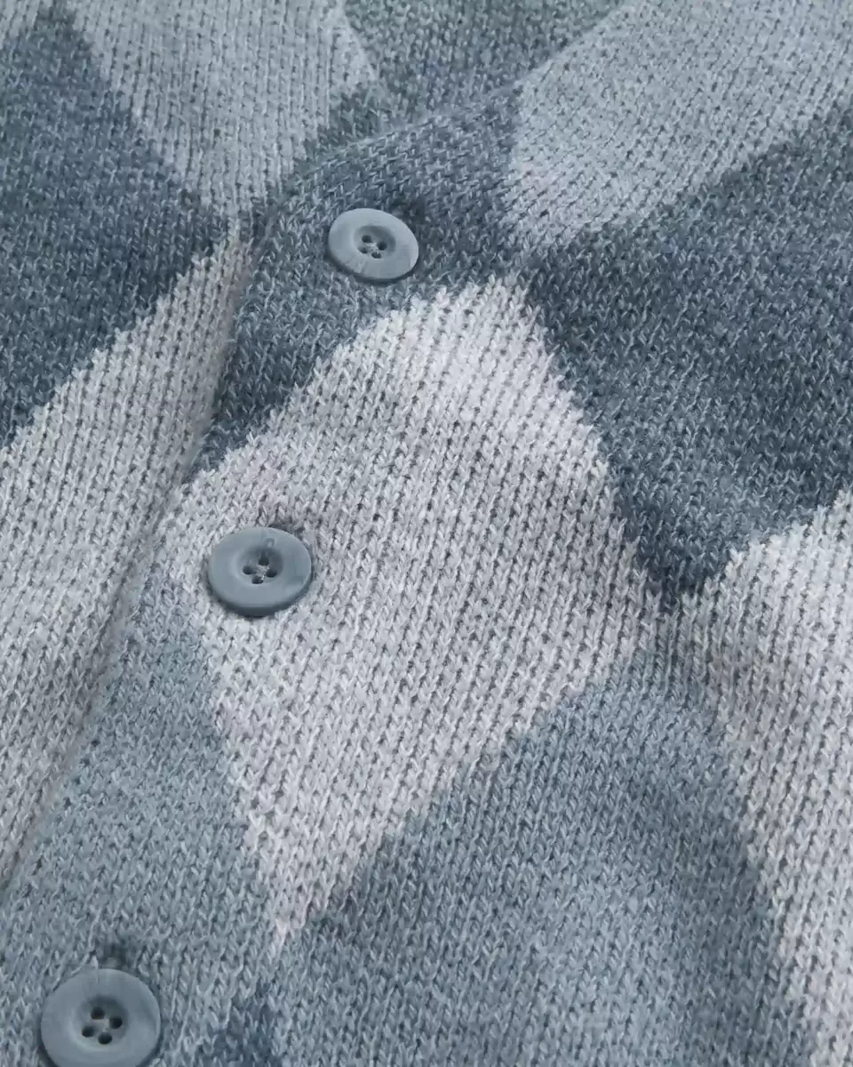 Un cardigan ultra doux et confortable avec un col en V et une fermeture boutonnée. Bordures côtelées, manches longues, motif classique. Coupe carrée. Importé.