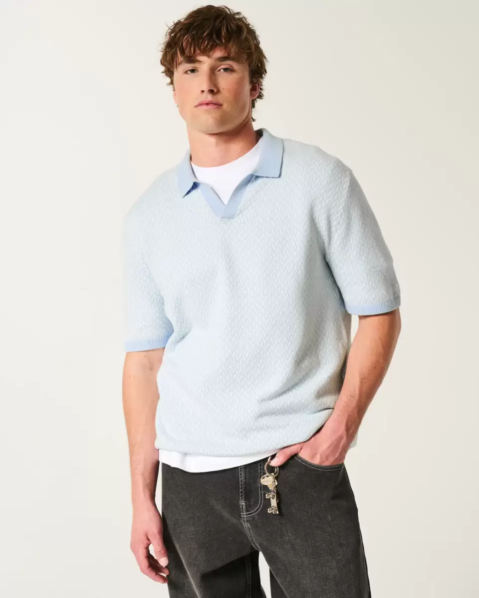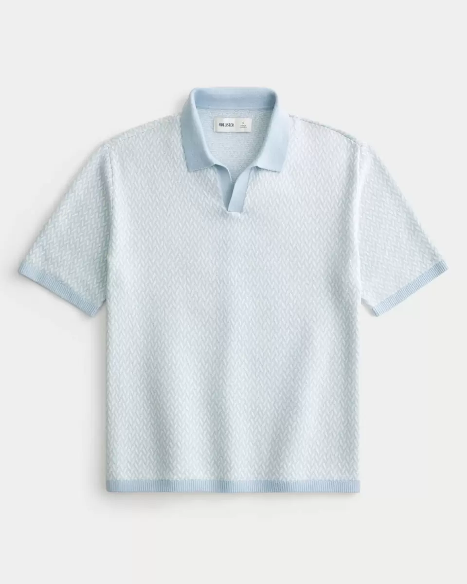 Ce polo est confectionné en maille ultra douce avec un motif géométrique classique. Col, manches courtes, patte de boutonnage sans bouton, ourlets côtelés. Coupe carrée. Importé.