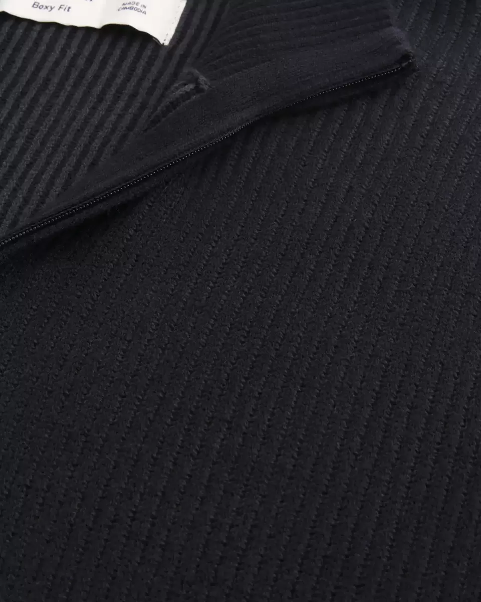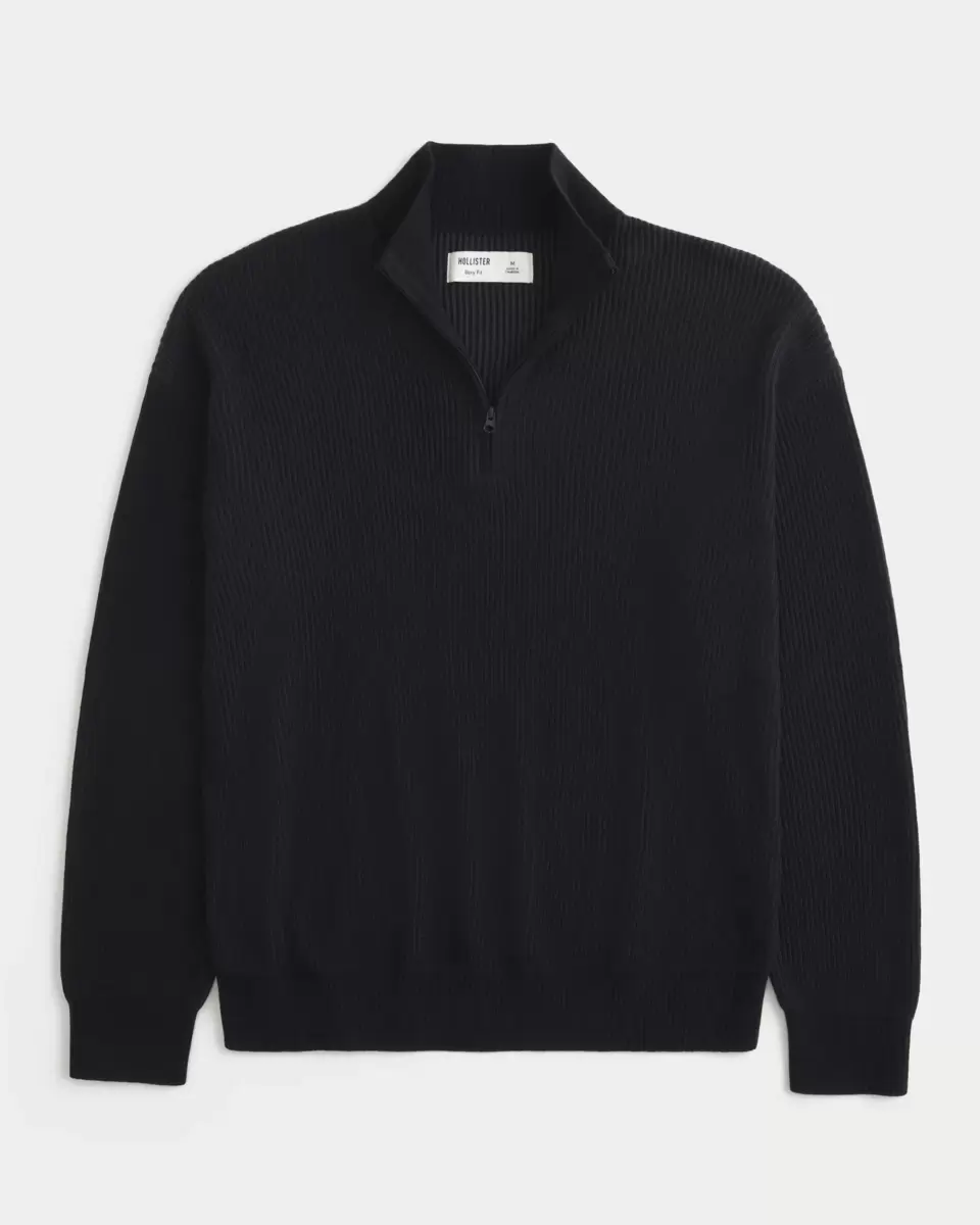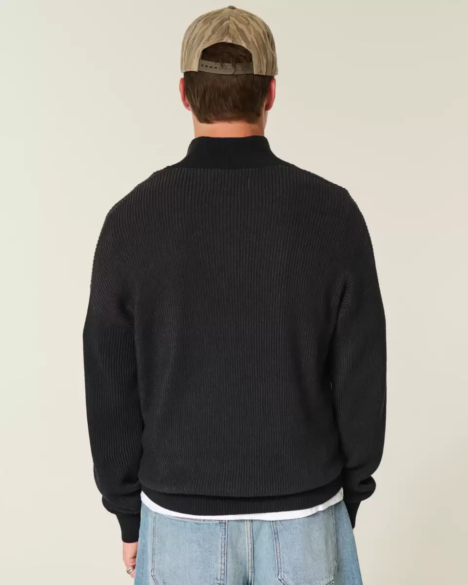 Pull en tricot ultra doux et confortable avec col montant et fermeture éclair quart de tour. Manches longues. Coupe ample. Importé.