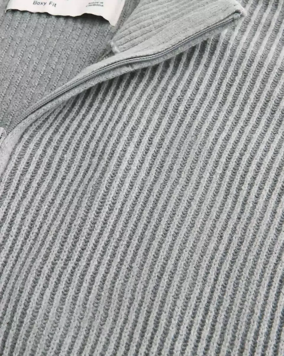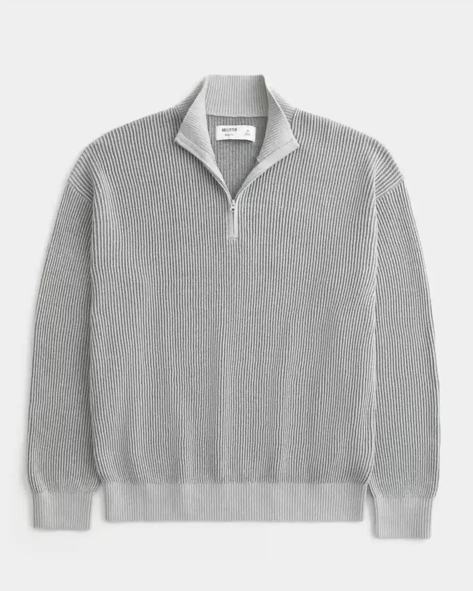 Pull en tricot ultra doux et confortable avec col montant et fermeture éclair quart de tour. Manches longues. Coupe ample. Importé.