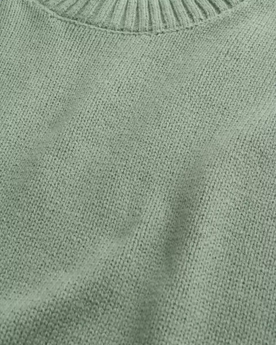 Ce pull ultra doux et confortable présente une encolure ras du cou, des manches longues et des bords côtelés. Coupe carrée. Importé.
