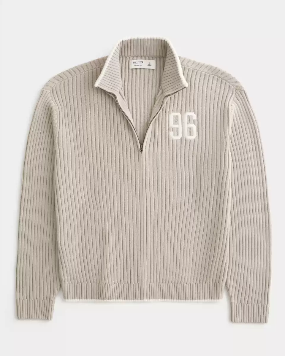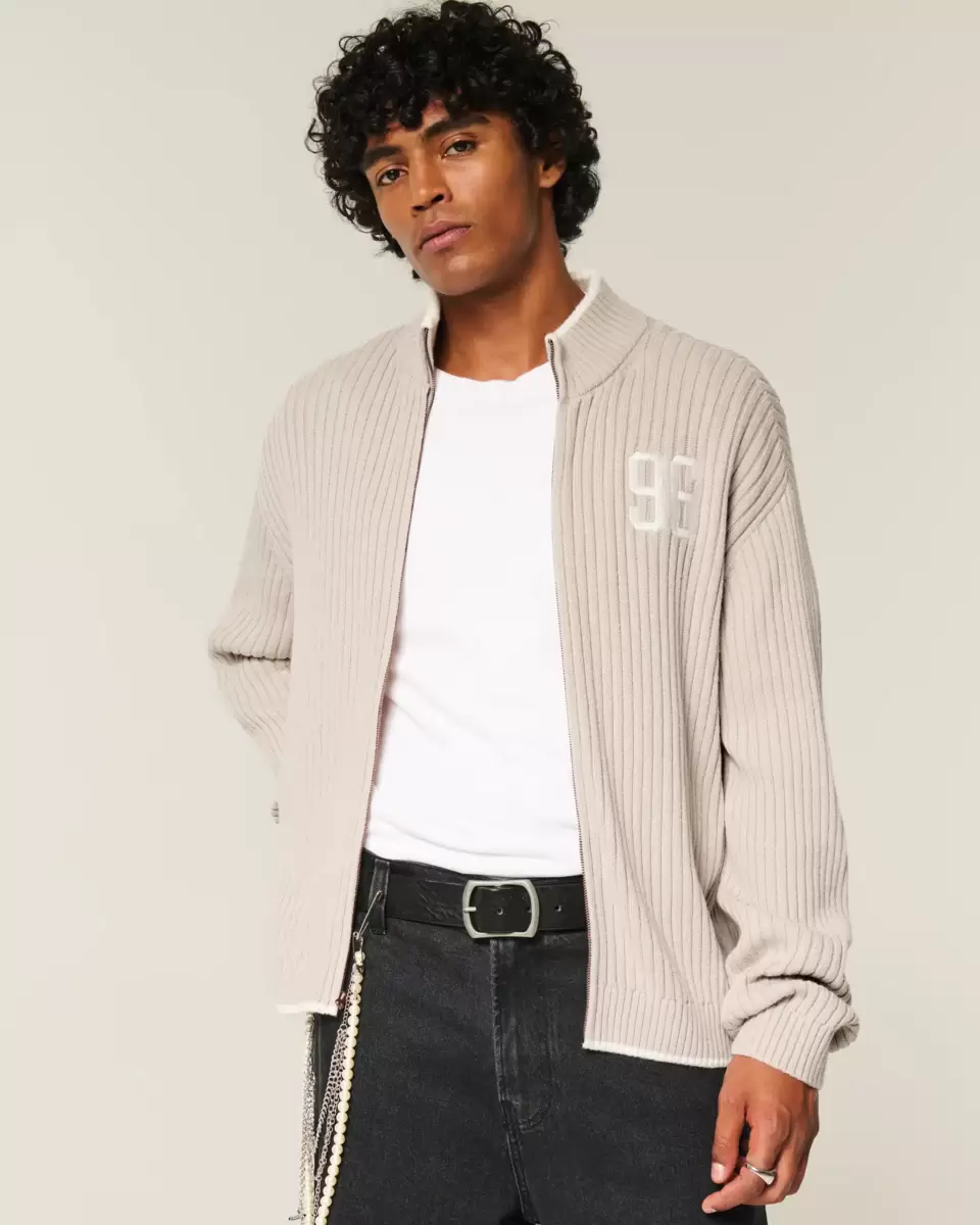 Ce pull ultra doux présente un col montant, une fermeture éclair intégrale et une broderie graphique du numéro sur la poitrine gauche. Bordures côtelées, manches longues. Coupe décontractée. Importé.