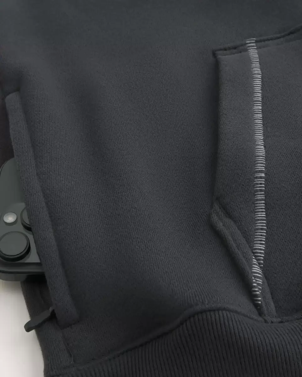 Ce sweat à capuche en polaire ultra doux présente des coutures contrastées et une poche kangourou sur le devant. Capuche et manches longues. Coupe carrée. Importé.
