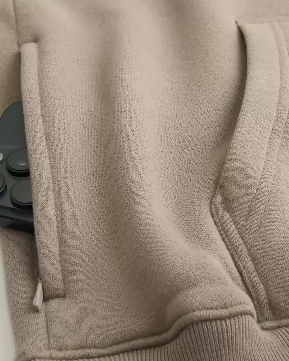 Sweat à capuche en polaire ultra doux et confortable, avec poche kangourou sur le devant et manches longues. Logo brodé sur la manche gauche et la capuche. Coupe ample.