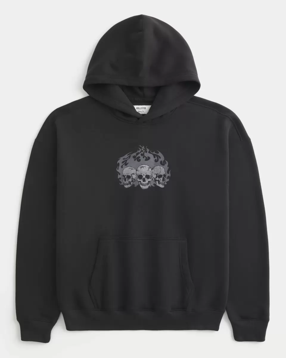 Ce sweat à capuche en polaire ultra doux présente un imprimé tête de mort et une poche avant. Capuche et manches longues. Importé.