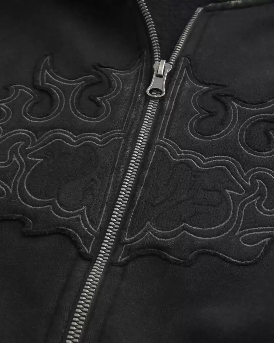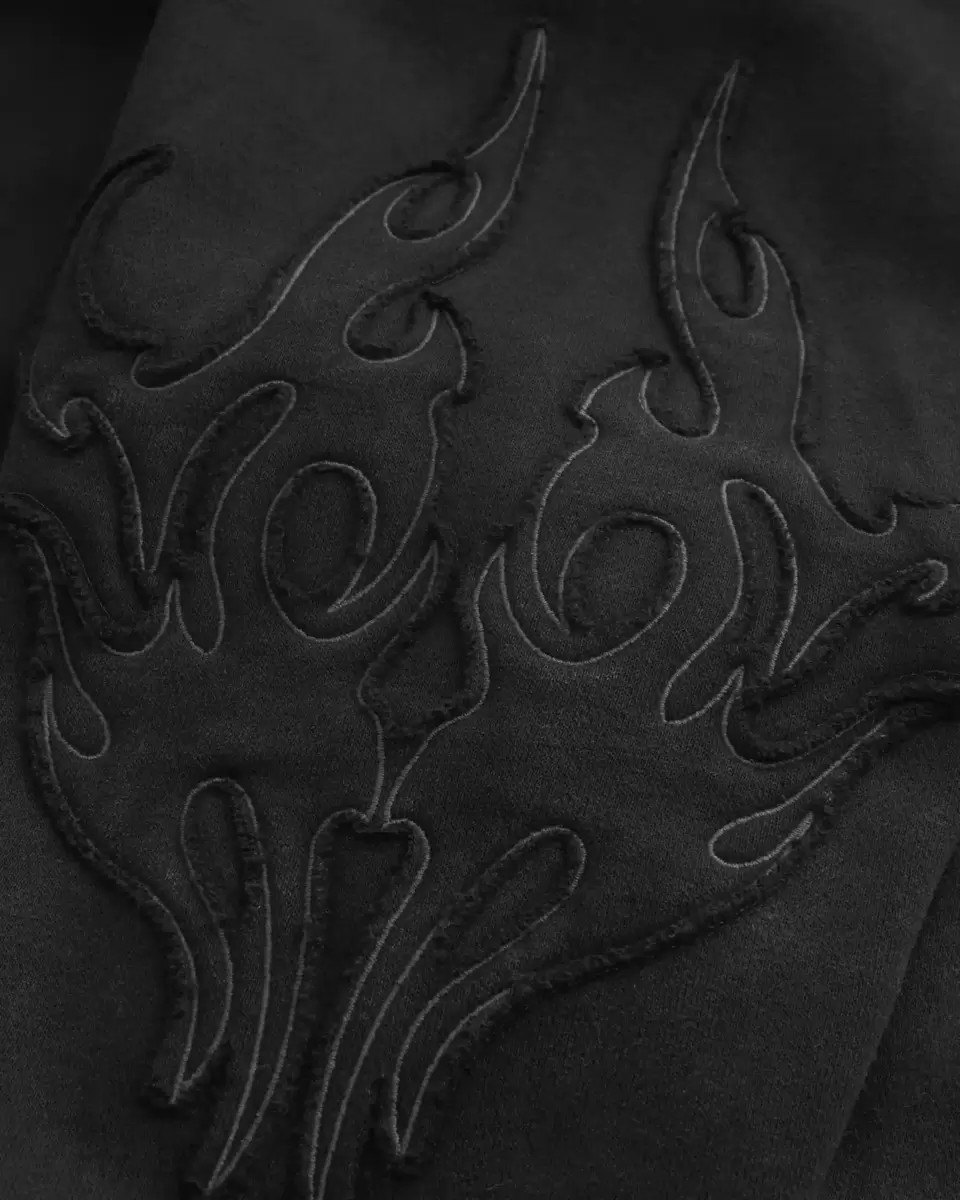 Sweat à capuche en polaire ultra doux avec motif flamme appliqué sur la poitrine et les manches. Fermeture zippée complète, poches avant, capuche et manches longues. Coupe ample. Importé.