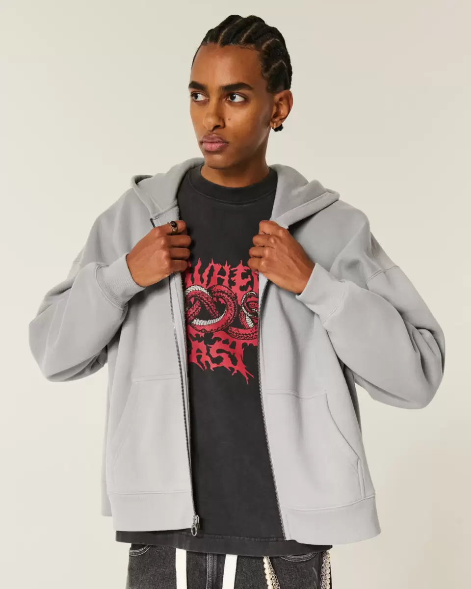 Sweat à capuche ultra doux à manches longues, poches avant et fermeture éclair intégrale, dans notre nouvelle coupe rectangulaire. Importé.