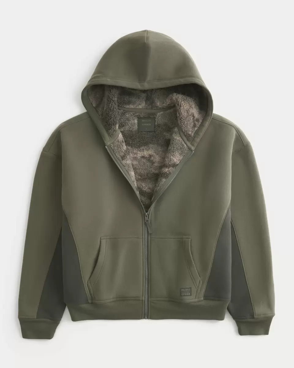 Sweat à capuche Dream Drop Hollister x Crocs en édition limitée, doté de la doublure sherpa douce emblématique de Hollister et d’une fermeture éclair intégrale. Poches avant, logo, manches longues et capuche. Importé.
