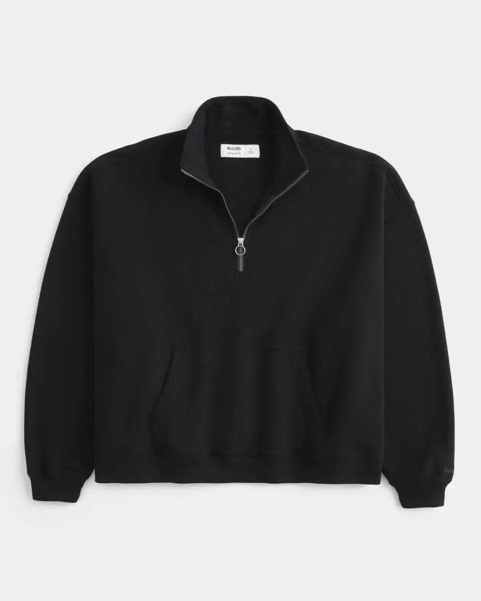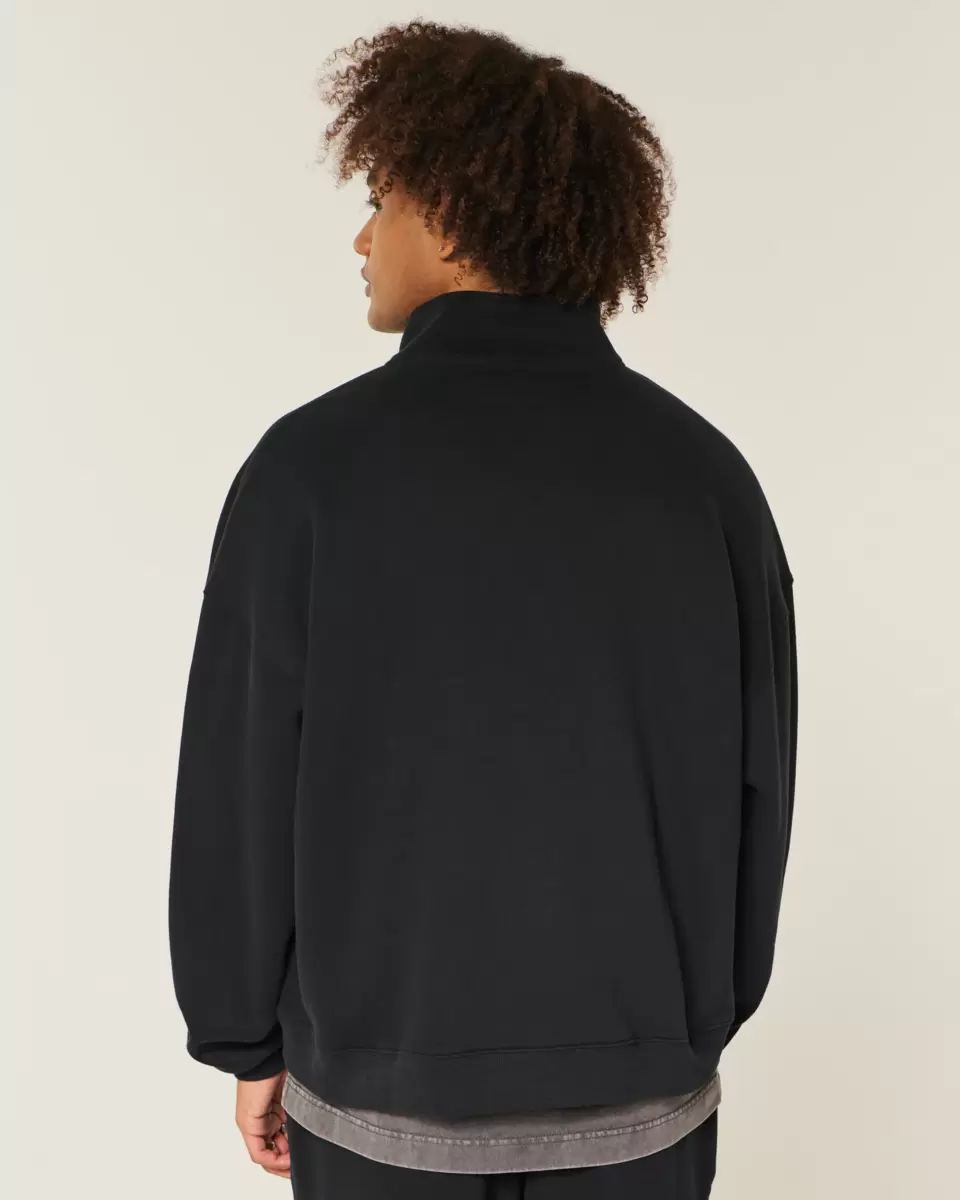Sweat-shirt en polaire ultra doux avec col montant, fermeture éclair quart de tour et poche kangourou sur le devant. Manches longues, micro-logo brodé sur la manche gauche. Coupe rectangulaire. Importé.