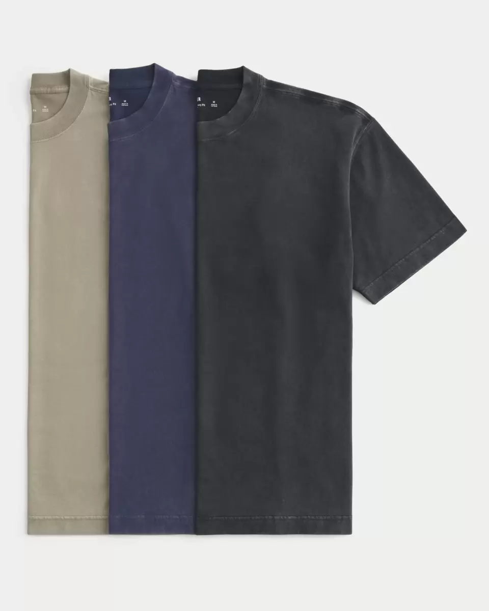 Lot de 3 t-shirts 100 % coton ultra doux et épais, aspect délavé. Encolure ras du cou, manches courtes. Coupe ample. Importé.
