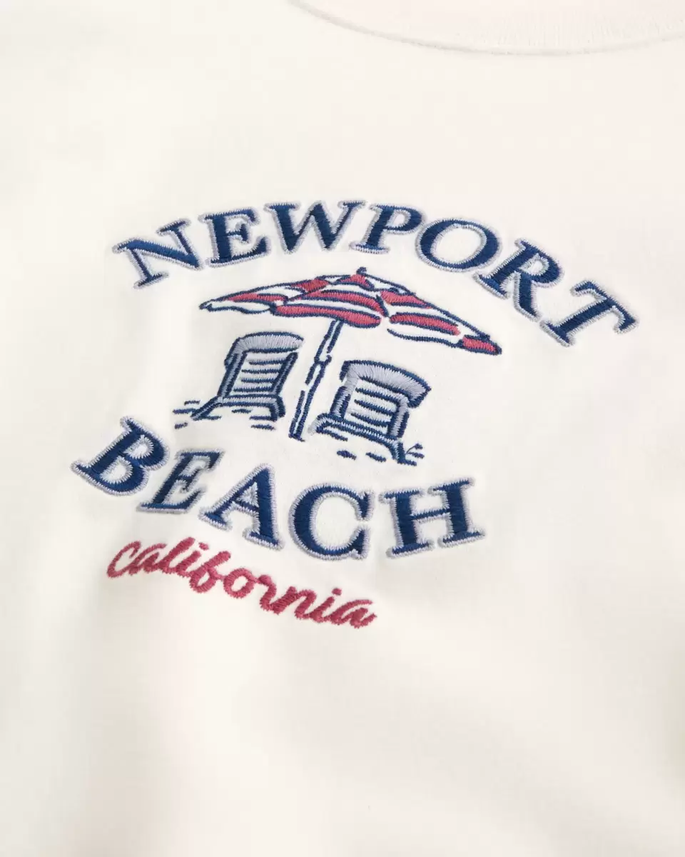 Ce t-shirt ultra doux est confectionné en 100 % coton épais et arbore une broderie Newport Beach California. Encolure ras du cou, manches courtes et coupe carrée.