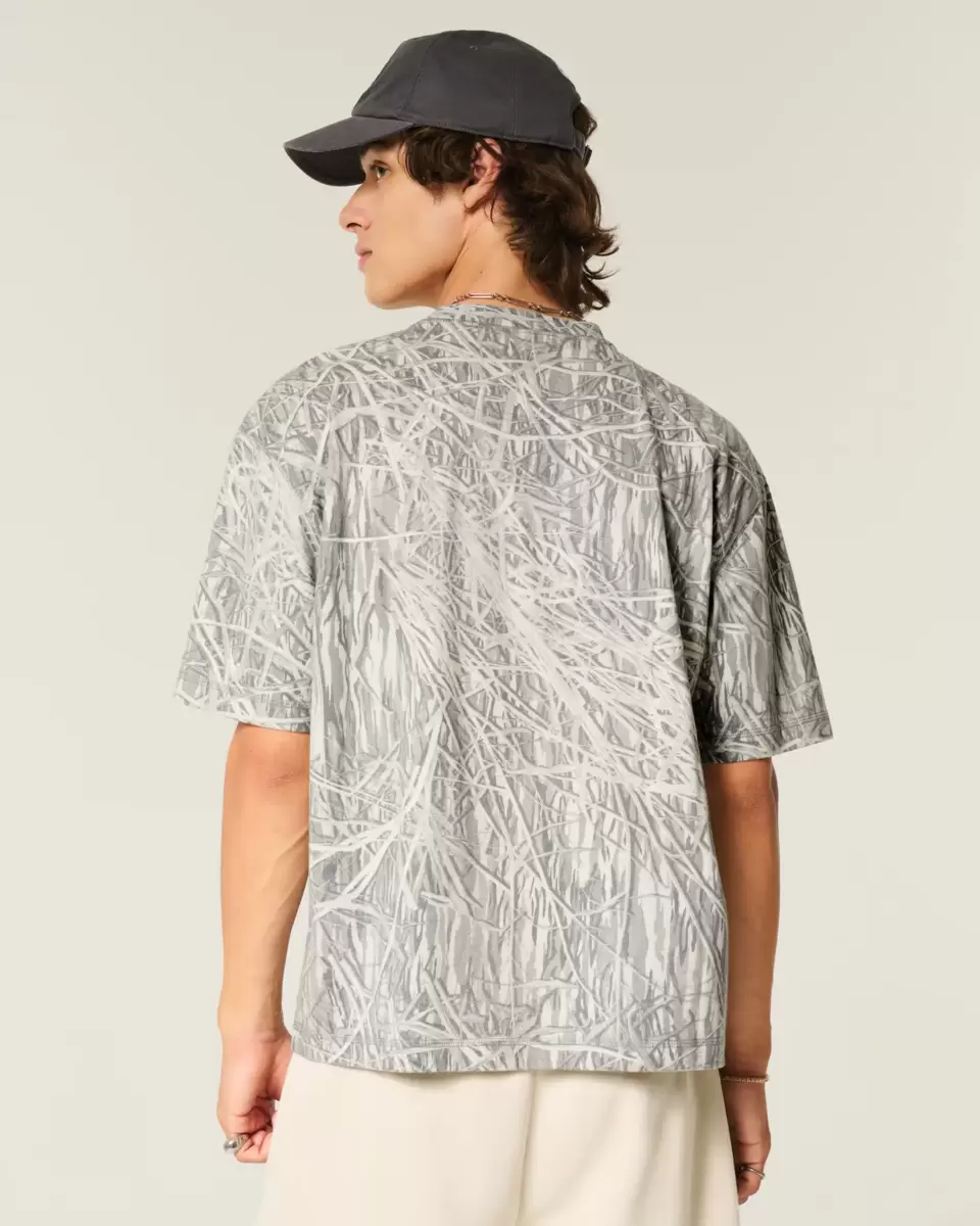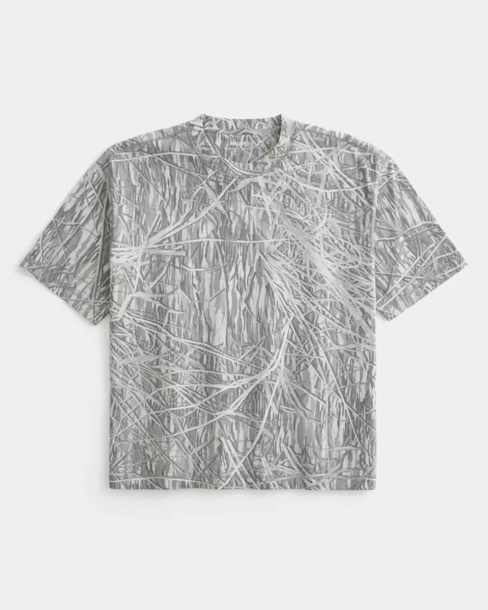 T-shirt ras du cou épais à motif camouflage et coupe boxy