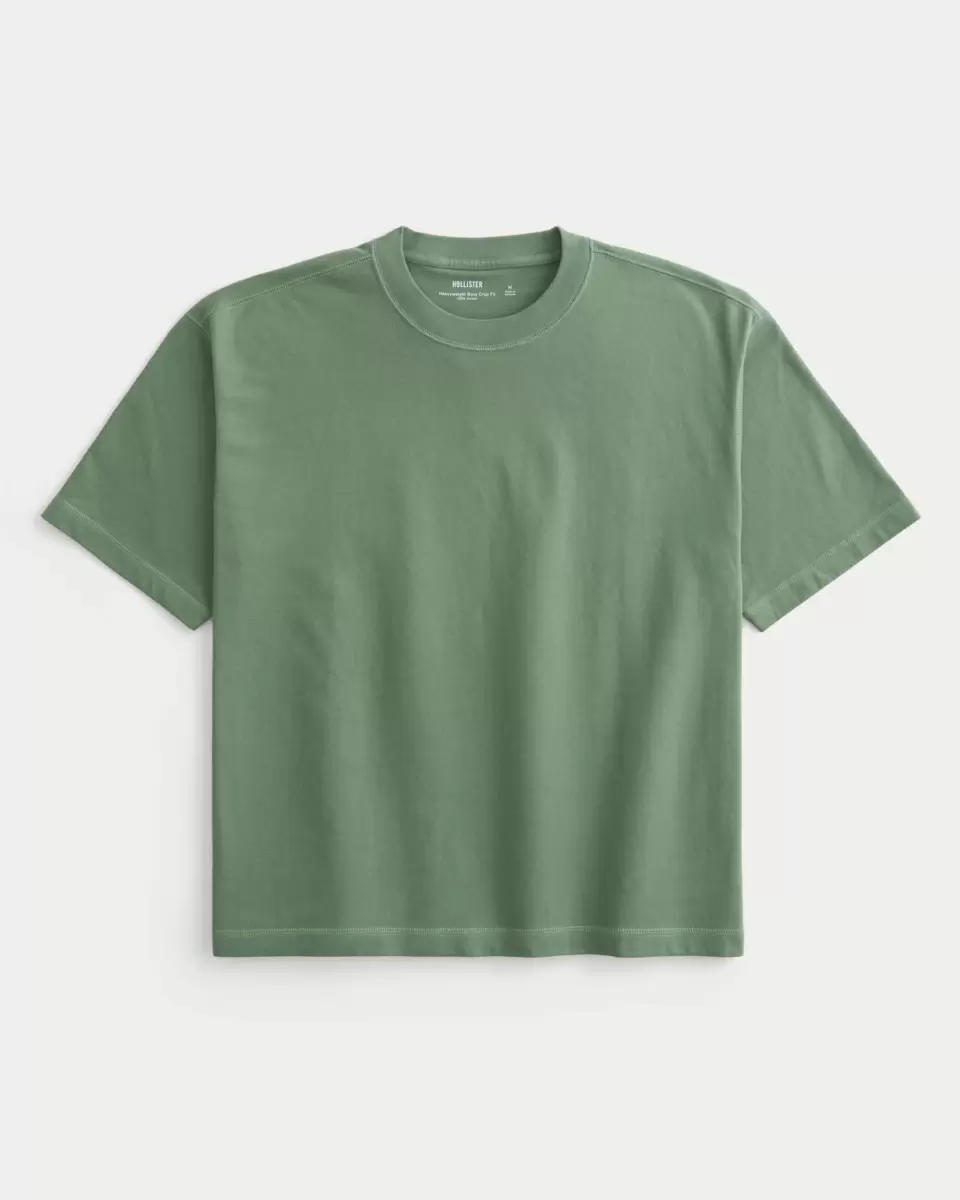 T-shirt 100 % coton ultra doux et épais, à col ras du cou et manches courtes. Aspect délavé. Coupe courte et ample.