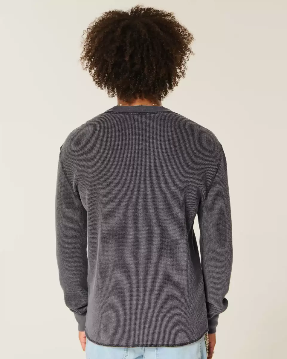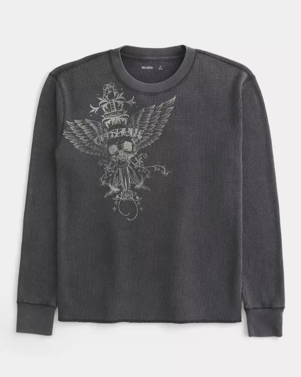 T-shirt thermique à manches longues d’inspiration années 2000 en tissu gaufré ultra doux. Encolure ras du cou, imprimé tête de mort ailée. Importé.