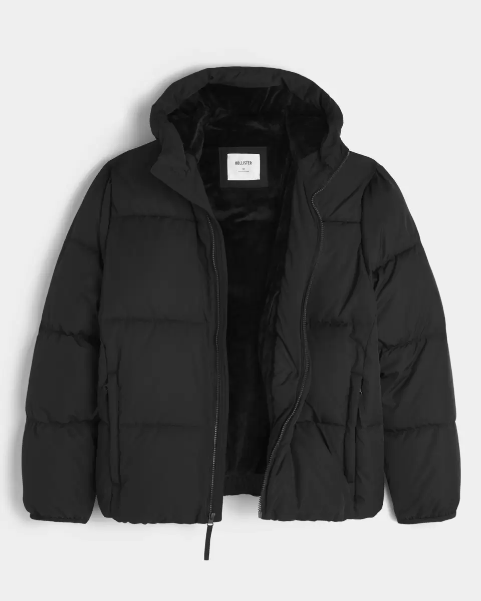 Doudoune épaisse doublée de fausse fourrure, dotée de larges empiècements matelassés, d’une fermeture éclair complète et de poches avant zippées. Capuche doublée de fausse fourrure. Importé.