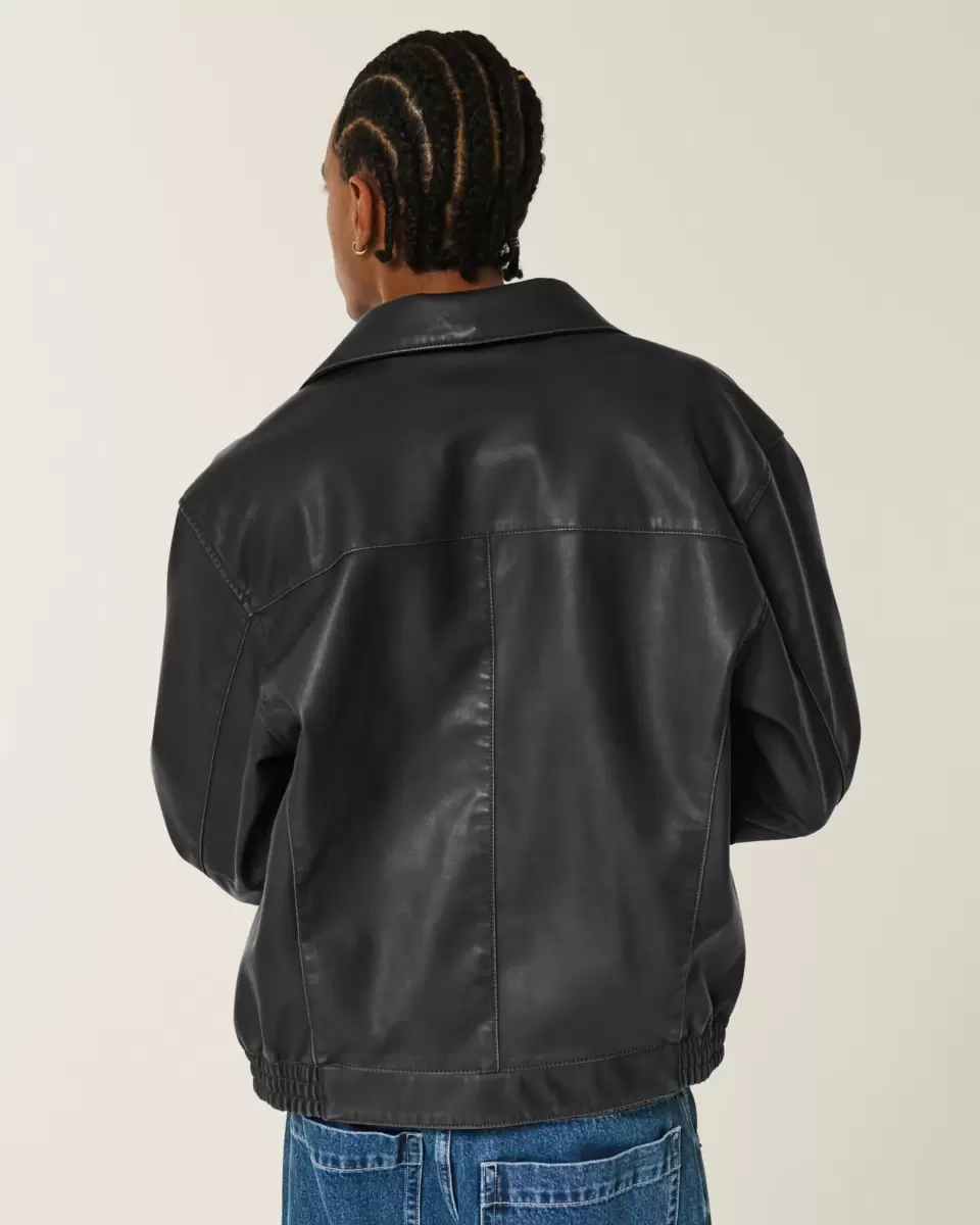 Veste classique en similicuir, dotée d’une fermeture zippée sur toute la longueur et de poches avant. Coutures poitrine, ourlet à bande et col.